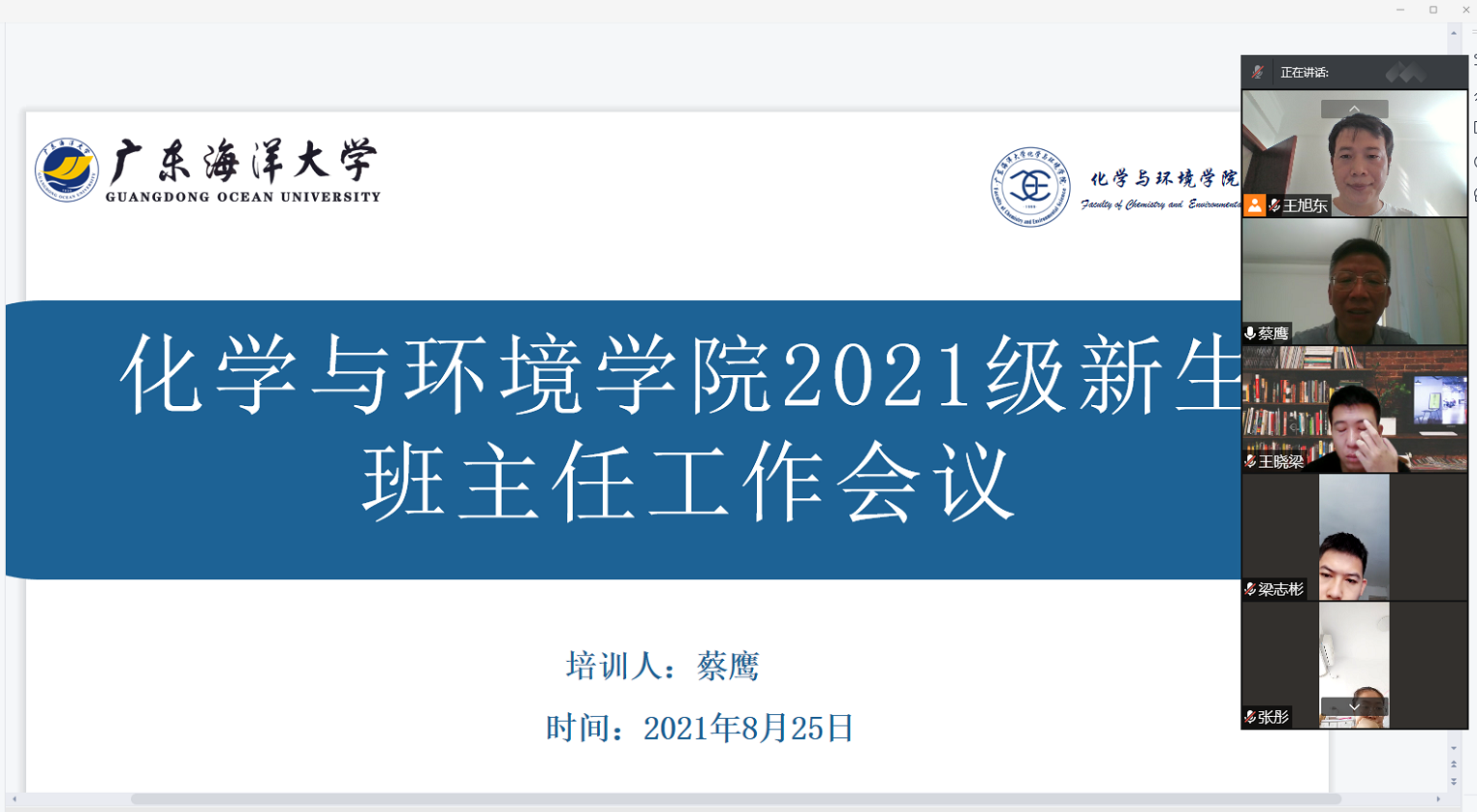 为了有效落实学校和学院关于迎新工作等相关安排,确保疫情防控、迎新报到等事情落实到位。8月25日上午学院在线举行新生班主任培训会。学院党委书记蔡鹰、2021级辅导员王旭东、新生班班主任参加此次培训会。